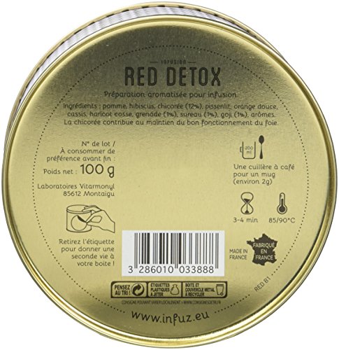 Livraison : 100g d’infusion Infuz Red Détox / Sureau, grenade, goji / Fruité et détoxifiant aux plantes d’origine naturelle / Fabriqué en France